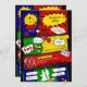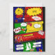 Celebrate your bachelor or bachelorette party bash in style with this aesthetic fun modern comic story book. The invitation is colourful and tells a retro comic story with speech bubbles. It shows a story with rings, party, las vegas, cards, gambling, party time, everything stays in Vegas and a wedding couple silhouette. Personalise it with your details, your monogram for your extraordinary cartoon celebration.
