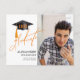 Modern Fun Script Grad Cap Orange Tassel Photo Graduation Party Invitation Postcard. Congrats the GRAD! Congratulations on their well-deserved success and celebrate them with this beautiful card. All the texts are pre-arranged for you to personalise easily and quickly with your own details.