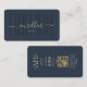 Modern Funeral Mortician Monogram Dark Blue Gold business card with QR code. Please feel free to ask me by DM if you need to add or remove social media icon before you make a purchase. Thank you for your support!
