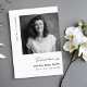 Express your gratitude and appreciation with our Personalised Funeral Memorial Sympathy Photo Thank You Card. This modern and minimalistic design is the perfect way to send heartfelt thanks to your friends and family during this difficult time. The card features a custom photo, allowing you to showcase a special moment or cherished memory of your loved one. The elegant script font adds a touch of sophistication and sets the tone for a thoughtful and heartfelt message. The card is a beautiful and meaningful way to express your thanks for the kindness, love, and support you received during your time of grief. In loving memory of your departed loved one, this card is a heartfelt tribute and remembrance. Show your gratitude with this personalised and thoughtful thank you card.