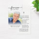 Keep the memory of a loved one close with this custom personalized prayer card featuring a cherished photo, the sentiment FOREVER IN OUR HEARTS in modern script, name and dates on the front and an editable faith-based poem accented with a simple cross on the back. With its simple yet elegant black and white design and modern handwritten typography, it makes a meaningful keepsake to share at a funeral, memorial service or Celebration of Life and offers comfort and a lasting tribute for family and friends. Its small and portable size of 3.5x2" (wallet-sized) makes it convenient for loved ones to carry it with them as a reminder of your loved one’s life and spirit. Personalization makes each card unique.