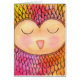 Quality Printed product featuring original hand painted mixed media painting by Pip Gerard (Pip Pip Hooray). Media used - acrylic paint, ink & modelling paste. Unique, bright, fun and bold! complimentary colours of pinks and oranges make up the feathers of this bold bird. soft blushing cheeks on this sleeping wise owl!