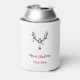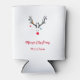 Modern funny abstract Christmas reindeer on white Can Cooler