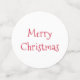 Colours: white, red, grey, blue, green. With the text: Merry Christmas. Red letters and a hand-lettered style script.