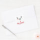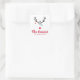 A funny and cute modern abstract image of a reindeer head with a red nose. With Christmas ornaments, baubles hanging from the antlers. White background,