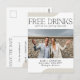This save-the-date postcard is perfect for the fun-loving couple eager to share their big day! Featuring a modern "Free Drinks (and We're Getting Married)" design, this customisable card includes your photo, names, wedding date, and location.