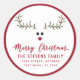 Modern funny holly reindeer script Merry Christmas Classic Round Sticker