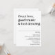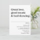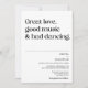 Great love, good music & bad dancing. Modern funny minimal design with trendy typography on white background. The text can easily be personalised for a unique one of a kind design for your special day.