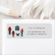 Cute and funny hand drawn family winter holidays greetings return address label featuring three silhouettes, a house, and a dog.