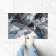 Gold lines geometric fragments on galaxy nebula space astronomy pattern, filled with shining white stars, dark grey cloudy space dust, watercolor painting stains and splatters, on multiple sized triangles with shining faux gold glitter strokes, dark blue, navy blue, grey, black and white colours universe artwork.