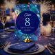 Elevate your reception with this Modern galaxy space moon phases celestial wedding table number, designed to bring the beauty of the cosmos to your celebration. Set against a dreamy midnight blue sky, this elegant design features detailed moon phases arranged in harmony with a glowing gazing halo and delicate constellation accents. The magical galaxy watercolor background blends soft nebula clouds with shimmering stars, creating a romantic space inspired atmosphere that feels both timeless and contemporary. Perfect for couples who love modern space themed astronomy décor, this table number captures the wonder of the cosmos while guiding your guests under a breathtaking celestial sky.