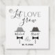 Simple, modern, elegant, black and white gay wedding favour tag with romantic quote: Let Love Grow.