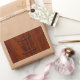 A Gemini zodiac symbol on a brown mahogany wood grain like print background. A classic rich style design for a great custom birthday gift idea for him.