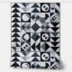 Modern throw pillow with geometric contemporary pattern featuring textured fabric-look patchwork design. Black, white, and grey shapes with quilted and smooth fabric textures. Contemporary abstract mid-century style perfect for modern living room, minimalist decor, or Nordic aesthetic. Monochrome design.