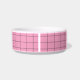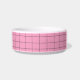 Modern geometric monochrome grid pattern bright pink customisable pet bowl gift cute accessory. Ideal gift for the pet owner in your life, personalised with the pets name in a modern check pattern.