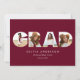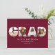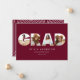 Geometric modern typography elegant natural burgundy multi photo graduation announcement card.
