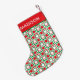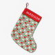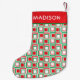 This modern holidays design features a festive red, green and white geometric pattern with your personalised name. Personalise by editing the text in the text box provided #christmas #stockings #christmasdecor