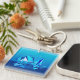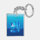 Mid-Century Modern acrylic keychain - geometric digital painting of a clipper ship in shades of ocean blue, from light aqua to deep cobalt