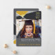 A modern and trendy, gender neutral graduation announcement card design featuring artistic geometric colour blocks in gold and greys with a single photo in a bold typographic layout.