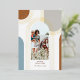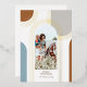 Modern geometric 1 photo golden arch holiday card. The design features an overlapping golden arch pattern with one arch photo frame. Designed by Moodthology Papery.