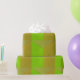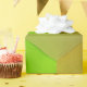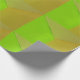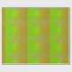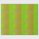 Y-shaped geometric design where lines split the square into three areas. Each area with a slightly different colour, all in green to yellow tones. The colour scheme stands out as fresh, a touch of cubism, somehow etnic, a tad psychedelic, and unique.