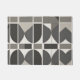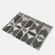 This geometric design features a stylish combination of curves and grid-like sections in shades of grey, white, and black.