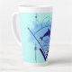 Modern geometric jumping dolphin graphic with watercolor splash on light aqua background