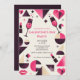 Make a bold statement with this contemporary Galentine's Day invitation featuring modern geometric shapes in pink, burgundy, and beige tones. The stylish design includes abstract lipstick, wine glasses, hearts, and lips with a mid-century modern aesthetic. Perfect for hosting a chic and trendy girls' celebration that stands out from traditional party invitations with its fashionable flair.