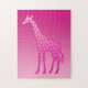 Modern Geometric Giraffe, Fuchsia and Light Pink Jigsaw Puzzle