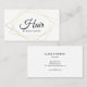 Modern business card for hair stylist features a (not real) gold geometric centerpiece with chic calligraphy.