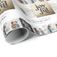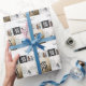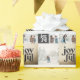 Modern geometric joyful typography multi photo christmas gift wrap. minimal monochrome black and gold effect graphic design. Part of a holiday collection.