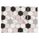 This pretty geometric pattern is made out of marble hexagons in rose pink, gold, black, and white. It adds a feminine, sophisticated touch to your home décor.