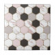 This pretty geometric pattern is made out of marble hexagons in rose pink, gold, black, and white. It adds a feminine, sophisticated touch to your home décor.
