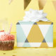 Trendy geometric pattern with mint blue, golden yellow and white triangles.