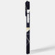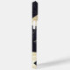 this case features a dark midnight navy blue and metallic antique gold simulated metal Abstract minimalist geometric print pattern, with a lower gold box and personalizable text in a slim minimalist sans serif font