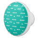 Modern ceramic draw knobs with a geometric teal blue and white pattern.