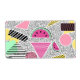 Modern geometric pattern Memphis patterns inspired, summer fruity watermelon slices geometric shapes, stripes, circles, triangles, squares, bright and colourful funky pattern perfect for the summer time wear, hot pink, blue, aqua green, bright yellow, white and black colours. Summer, sun, beach, feminine, girly, elegant, chic, trendy, simple, fashion, artistic, art, artwork, illustration, unique, vibrant, happy, young, popular, stylish, awesome, image.