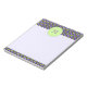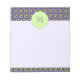 This notepad features a modern geometric pattern using the trendy colour combination of purples and greens. A light green circle centred at the top features a customisable monogram.