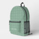 Chic and Stylish, this Modern Green Printed Backpack features a hand-drawn pattern of bright green and sage green lines arranged in a whimsical and unique geometric pattern. Easily customise the name for a personalised touch.