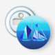 Bottle opener in a geometric digital painting of a sailboat / yacht in shades of ocean blue, from light aqua to deep cobalt