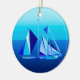 Modern Geometric Sailboat / Yacht, Cobalt Blue Ceramic Tree Decoration