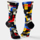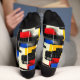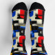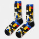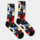 Bring a striking edge to your wardrobe with these modern geometric socks, featuring bold colour blocks in red, blue, yellow, and black. The dynamic design is enhanced by sleek black grid lines and subtle grey accents on a cream background. Perfect for those who love contemporary style and artistic flair, these socks make a bold and unique statement.