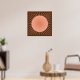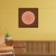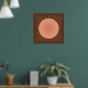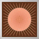 Mid-Century Modern abstract sunburst with a silky, gradient effect - peach / coral pink on a deep chocolate brown background