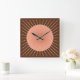 Modern Geometric Sunburst - Peach and Brown Square Wall Clock