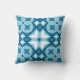 Throw pillow in a four-way, Mid-Century Modern, Geometric tile pattern in shades of light to dark denim blue and white