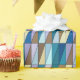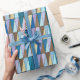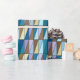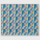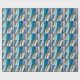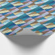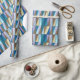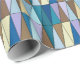 Wrapping paper in a Mid-Century Modern geometric grid of triangles in sea glass colours of cerulean blue, turquoise, aqua, coffee brown, beige and soft violet