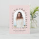 Geometric modern typography elegant girly pastel pink photo arch graduation announcement card.