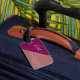 ...to identify your belongings... White map of the world on a wine background colour, personalised with your name and additional informations.