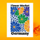 Celebrate the cheerful spirit of Central Europe with this vibrant Germany Flower Market design. This modern illustration features a high-contrast arrangement of stylized blossoms in brilliant shades of cobalt blue, forest green, and golden yellow.