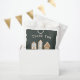 Whimsical Christmas theme baby shower favour bag featuring illustration of gingerbread houses with blue accent.